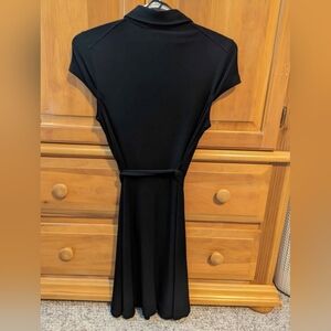 This "little black dress" can take you from day to night, from the office to a night on the town. It features a classic button-down design, perfect for any occasion. Its sleek silhouette and tie waist add a touch of sophistication to your wardrobe.