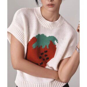 The Pippa Crew-Neck Sweater by Maeve: Cap-Sleeve Edition Strawberry XL Petite