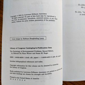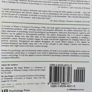 The Psychology of Environmental Problems by Deborah Winter and Susan Koger. 2nd Edition. This book applies psychological theory and research to environmental problems. Written for psychology and environmental studies students.