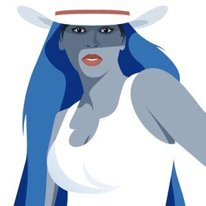 The Queen in a Cowboy Hat is an homage to the one and only queen. Disclaimer, no blue hair in real life.
