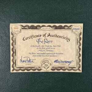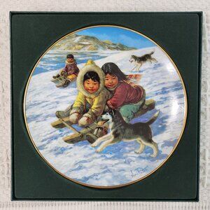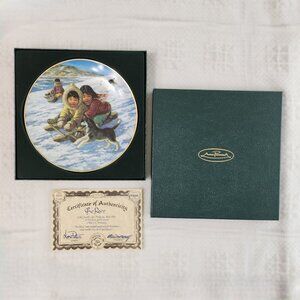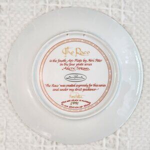 Vintage/Retro Anna Perenna Decorative Plate by Canadian Artist Nori Peter. *The Race* Plate 4 of 4 Plate series, Arctic Springs.1985. Number 2991 of 9500 issued. 9.5 inches diameter. Great for hanging or display with a plate stand(not included). Like Mint new condition with certificate and storage box.