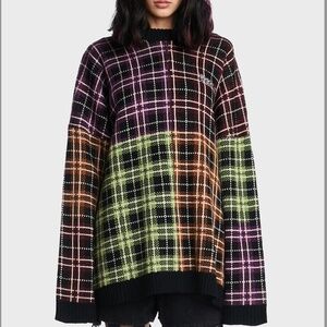 The Ragged Priest Anarchy checkered plaid oversized jacquard sweater NWOT