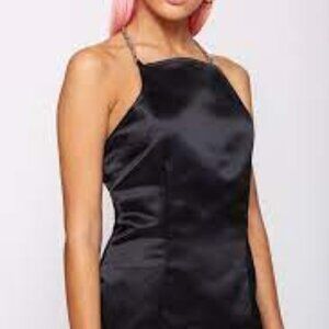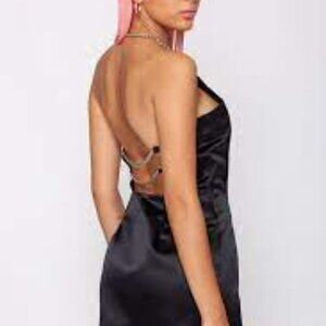 Featurin' sik AF chain halter straps and and chain straps on dat deeply open back makes dat mini bb so sexy they won't handle.