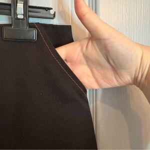 There is a small area on the hem stitching on the back of the left leg where some of the thread has come loose. Also a potential repair in the crotch; unsure if this is actually a repair as it doesn't look like one from the inside, but something to be aware of. See photos for examples. Otherwise in great condition.