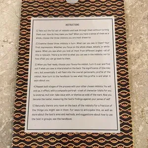 32-page Handbook: The handbook provides a short history of inkblots and a personality profile for each blot.