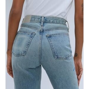 High-rise with a wide, straight leg. Slim fit through hips and thighs. Sits just above belly button.