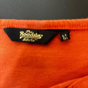 The Roadster Top Women Medium Orange Rust V-Neck Ruffled Long Sleeve Blouse Boho