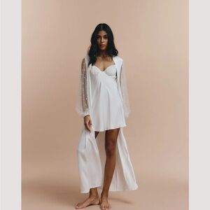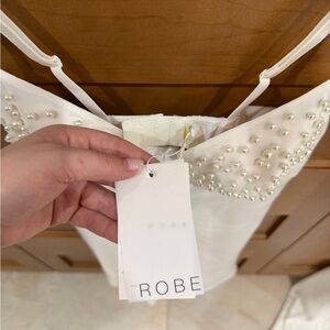 Selling this stunning Cassidy bridal set (xs long pearl sleeve robe + small satin pearl slip dress). Purchased for $380 CAD and never worn — tags still attached.