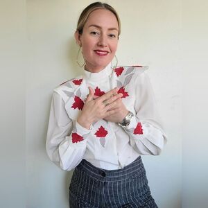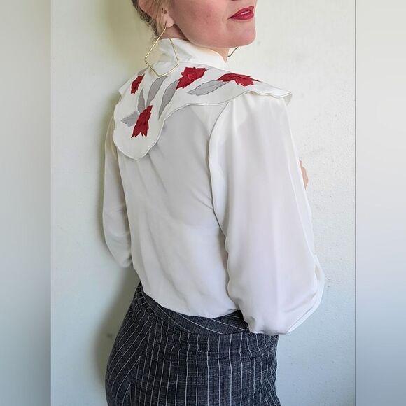 The Rosalia Red Rose Victorian Vintage Blouse S