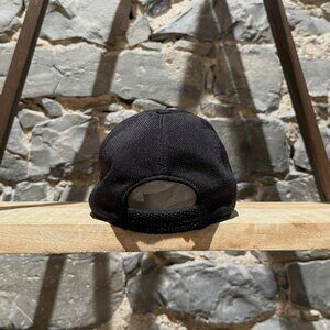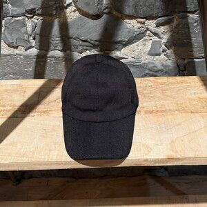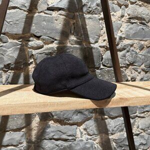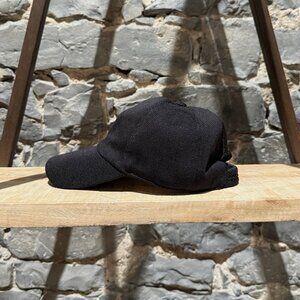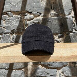 The Row Black Silk Knit Caspian Baseball Cap. Black knit design made from 100% silk. Classic six-panel construction with a curved brim. Elastic strap at the back for an adjustable fit. Minimalist design. Made in Italy. Comes as is.