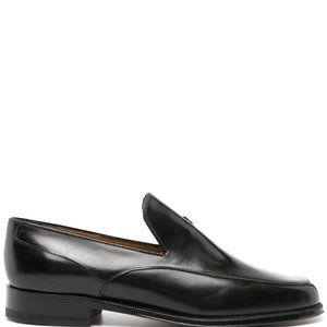 Set on low stacked heel, these Enzo loafers showcase The Row's affinity for a minimalist aesthetic. They are crafted from leather and feature an elongated almond toe.