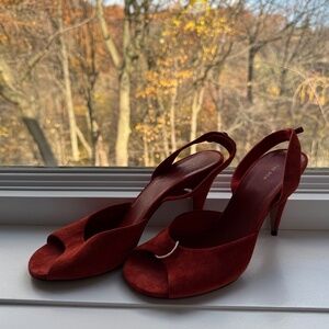 A gorgeous pair of unworn suede open-toe slingbacks by The Row.