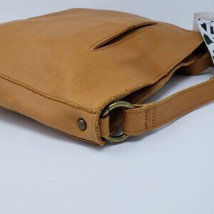 This slim crossbody bag fits comfortably at your side made of soft and smooth leather.