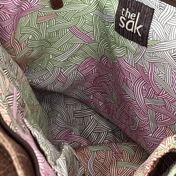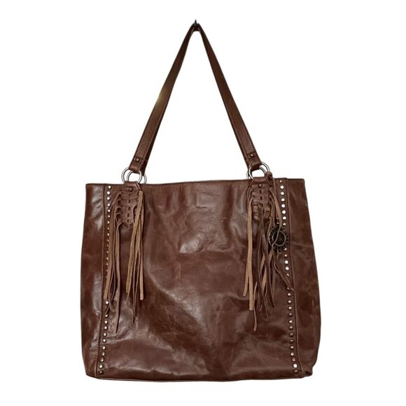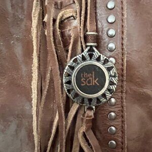 The Sak Montara Tan Leather Fringe Studded Boho Tote Handbag Shoulder Purse