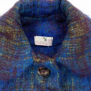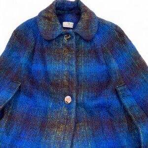 The Scotch House Blue Wool Mohair Tartan Plaid Button Cape Wrap Jacket