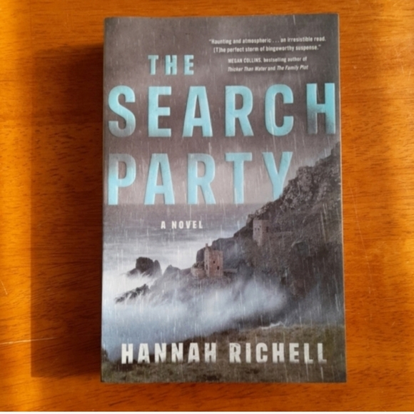 The Search Party novel by Hannah Richell. Features a dramatic cover with a stormy sea and cliffs.