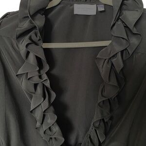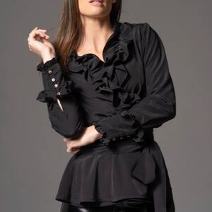 Vera Black Frilly Cross Over Wrap Evening Blouse
