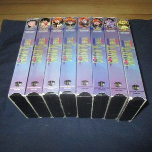 This is series of 8 Anime VHS movie tapes in sequence from the season: The Slayers Next - The Sudden Punch (Episodes 27-29), I'll get you (Episodes 30-32), The Shocking Confession (Episodes: 33-35), The Unexpected End? (Episodes 36 - 39), The Forbidden Dance? (Episodes 40-42), Secret of the Giga Slave (Episode 43 - 45), Death of the Devil Dragon (Episodes 46- 48), Phantom City (Episodes 49 - 53). These 8 anime videocassettes from Software Sculptors from 1999 are in Japanese and subtitled to English and are in pretty good condition with box that have only a bit of wear on them. It was part of a collection from a collector and was not overplayed. All were tested and all have great sound and video. The 8 anime VSH videocassettes are being sold as a set of 8 as is.