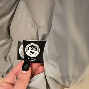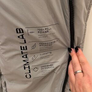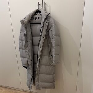 Loved for one season. Great condition. The bottom zipper could use a few stitches to the aligned fabric. Likely would benefit from a dry clean as it’s a light gray colour. Full price online is 400$ without tax.