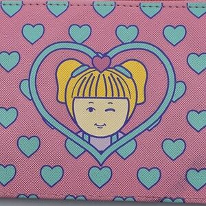 The Tiny World of Polly Pocket Teal & Pink Heart Pattern Coin & Card Clutch - new without tags, never been used.