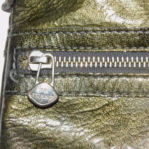 The Trend Womens Green Metallic Shellac Leather Crossbody Shoulder Bag Purse