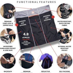 The UnderCover Convertible Backpack Changeroom Shorts Skort Garment BNWT Black