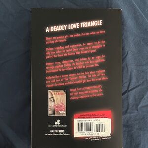 The Vampire Diaries book with a dark and mysterious cover. Features red and white text.
