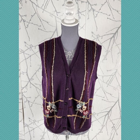 The Villager VTG Ramie Cotton Blend Floral Embroidered Sweater Vest
