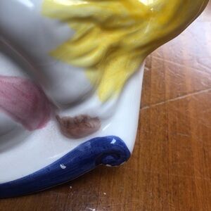 This delightful ceramic creation captures the playful essence of art with its vibrant yellow and pink hues. The piece features a charming character riding a rocking horse, exuding a sense of motion and joy. Perfect for adding a touch of whimsy to any space, this ceramic art is a testament to creativity and craftsmanship.