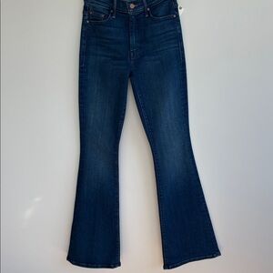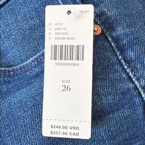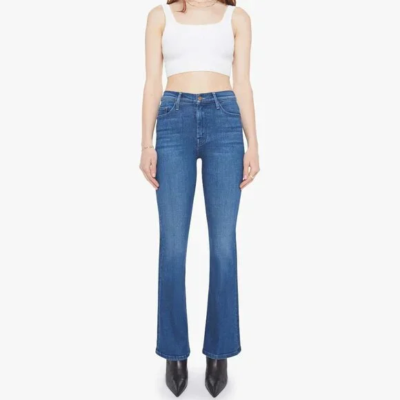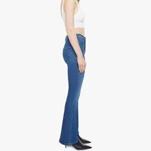 This cult-favorite flare jean has a mid rise, zip fly, 31-inch inseam and a clean hem. Made from stretch denim, Nip It In The Butt is a mid-blue with whiskering and fading at the knees. Wash is Nip It In The Butt. Size 26.