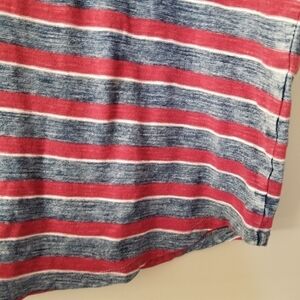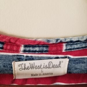 The West is Dead Indigo & Red Striped Cotton Short Sleeve Tee Shirt Size Large