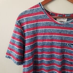 The West is Dead Indigo & Red Striped Cotton Short Sleeve Tee Shirt Size Large