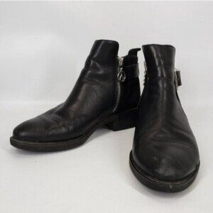 The Wishbone Collection Black Moto Ankle Boot Size 6.5M Leather Bootie Fall