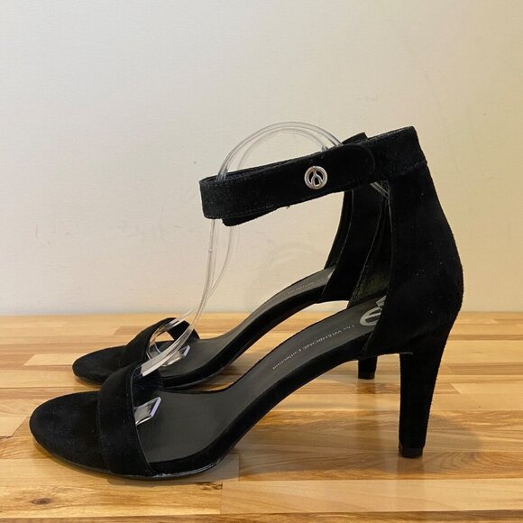 The Wishbone collection pumps Natalie Black Suede Ankle strappy Strap Stiletto Heels in size 11