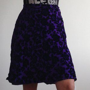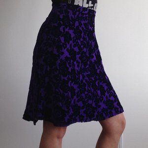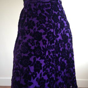 The Work Connection - Dark Purple Velvet Burnout Flower Skirt