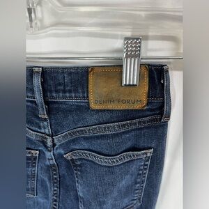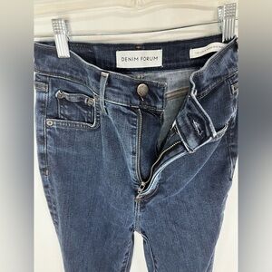 27/27. Inspired by women who pushed creative boundaries, the Yoko is Denim Forum’s signature high-rise slim jean. The Yoko fits like a treasured vintage find that feels great from day one, thanks to a touch of stretch. Premium Italian organic cotton denim becomes more beautiful over time — we call it performance art. This version comes in a medium-light indigo wash with a cropped length and clean hem.