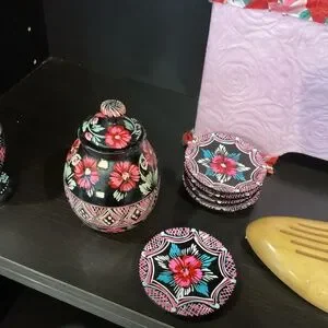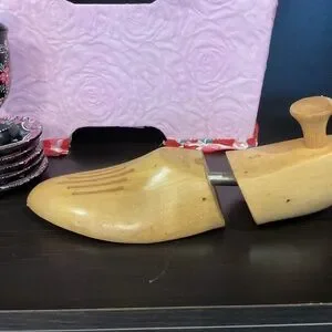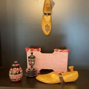 Mexican wooden hand painted pottery, wall pocket, wooden shoe sizers used as wall hooks