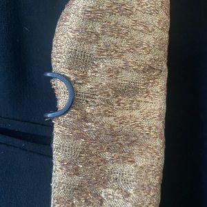 Gorgeous black blazer with gold brocade collar. Sleek black metal closure and slit pockets on each side. Beautiful seamed detail on the back and down the sleeves. Signature black metal Rag & Bone single buttons on sleeves. Size 0.