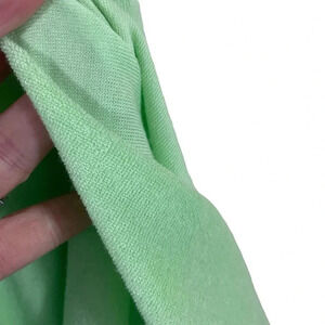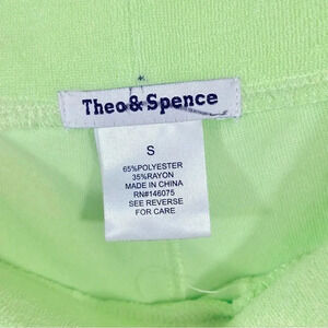 Cozy and bright from Theo & Spence - Terry Knit Wide Leg Pants; perfect for lounging or snoozing. These pyjama lounge pants are wide leg with drawstring elasticised waist. Raw hem. Single back patch pocket. The colour is technically called "moss", but I'd call it more of a bright apple green :)