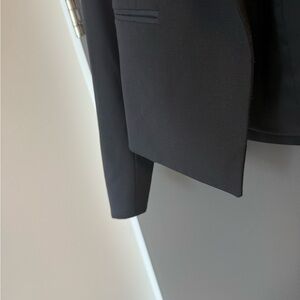 Theory Sz. 0 NWOT- ripped off by accidentally- might still find them… wool blend/classic Tux style you know it and lobe it! Features a tailored design and sleek lapels. Perfect for office wear.
