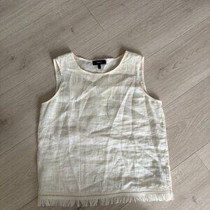 Theory 100% linen sleeveless top in a soft cream shade. A beautifully minimal piece with a subtle fringe hem that adds texture and movement — perfect for warm weather or layered looks.