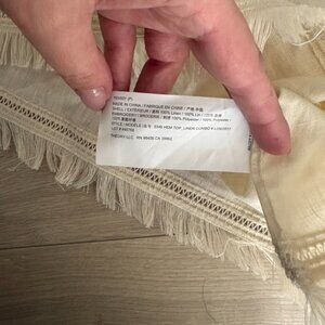 Theory 100% Linen Fringe Top S Cream Minimalist Sleeveless