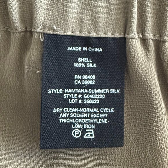 Theory 100% Silk Olive Green Pants – Size M – Luxe & Effortless
