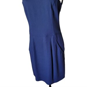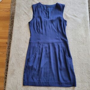 Sleeveless shift dress with a dropped waist, front pockets and side zipper. In very good used condition