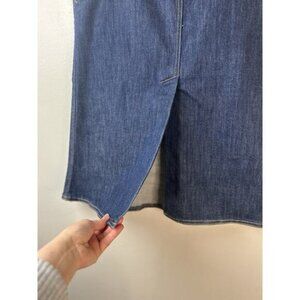 Theory Aline Denim Skirt Size 8 Pockets Blue Dark Wash Contrast Trim Women's 8