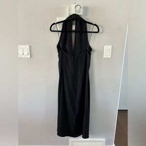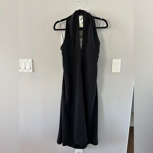 Black midi dress by Theory. Halter v-neck - hook and eye closures at the back neck. New with tags!