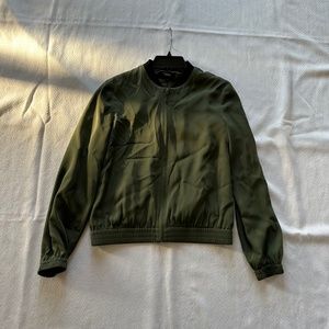 Theory Bahara Silk Jacket/Bomber, Size P (Petite), Green and Black