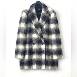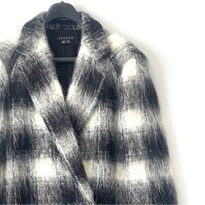 Chic plaid design. Double-breasted style. Warm and stylish.