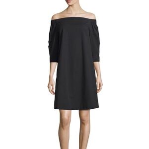 Theory Cotton Poplin Off Shoulder Black Dress