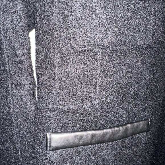 This beautiful black boucle jacket from Theory is a great solution for the woman who's always cold but still wants to look chic and stylish! It features two layers of warmth: an outer textured boucle layer and a felt inner layer, both black. The pockets are trimmed with butter-soft lambskin. The jacket has a stand-up collar and a full length zip. It is in very good pre-loved condition with no visible signs of wear. Fabric is 90% wool with 5% nylon and 5% polyester for added strength. Please see photos for measurements.